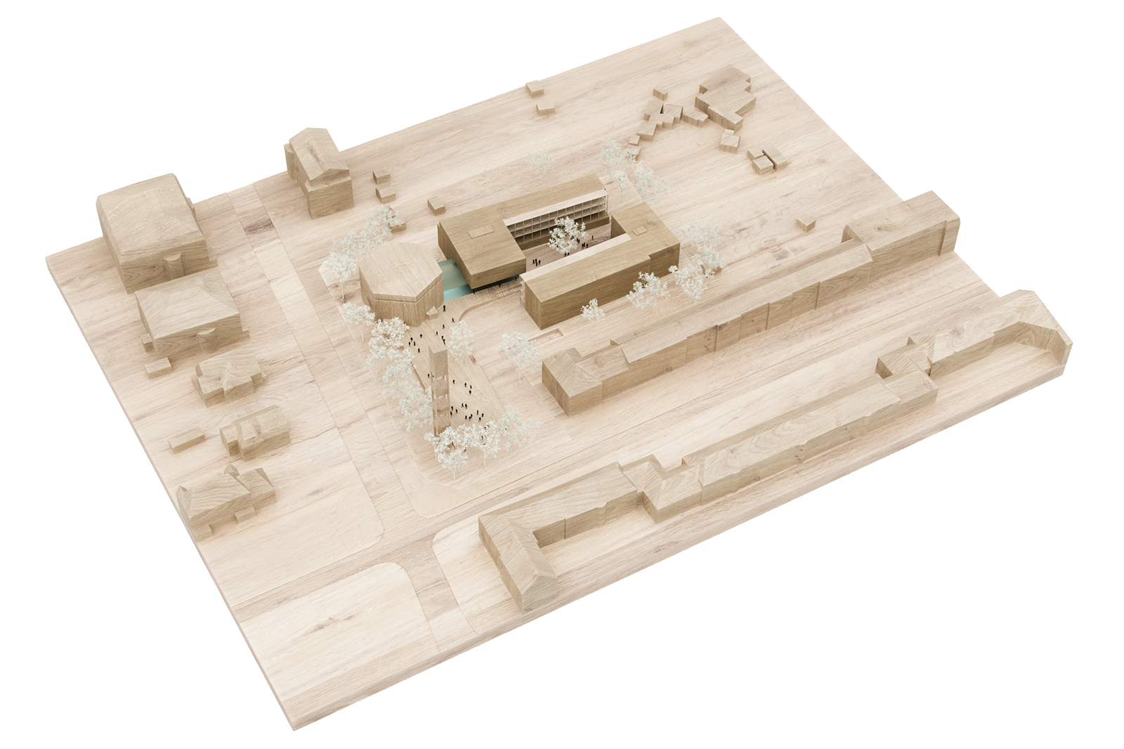 Der Kirchenvorplatz wird durch eine Rampe, die den Höhenunterschied von ca 1,50 Metern ausgleicht, verbunden. Alle Nutzungen mit Ausnahme des Gemeindesaals werden über den gemeinschaftlichen Hof erschlossen.
