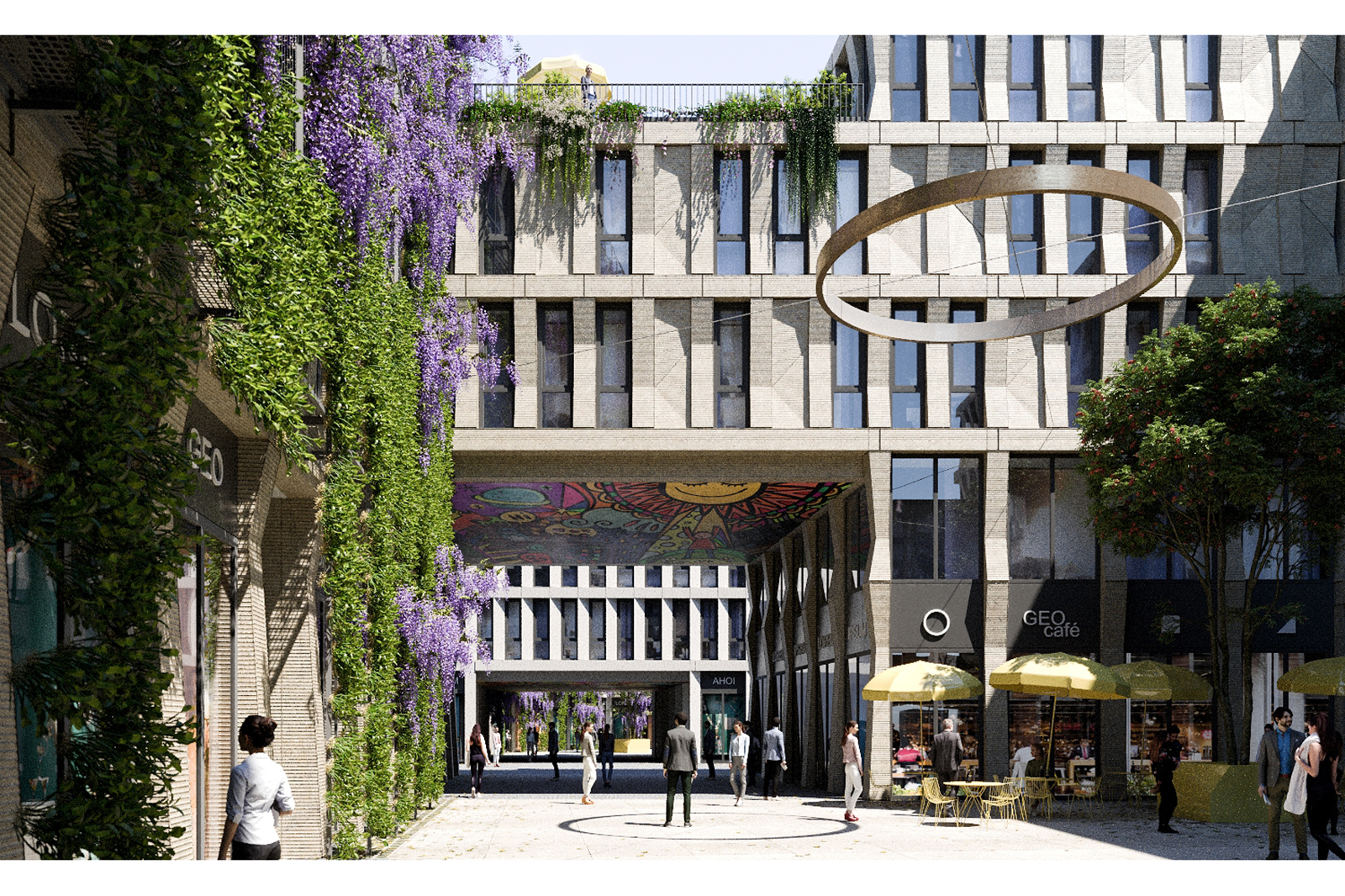 Der Hauptzugang zu der Passage durch die Höfe wird durch einen 2-geschossigen Unterschnitt des St. Petersburger Hofes in Verlängerung der Ammonstraße markiert.